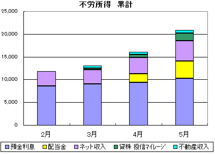不労所得の累計です。コツコツ分散積立投資を続けます。