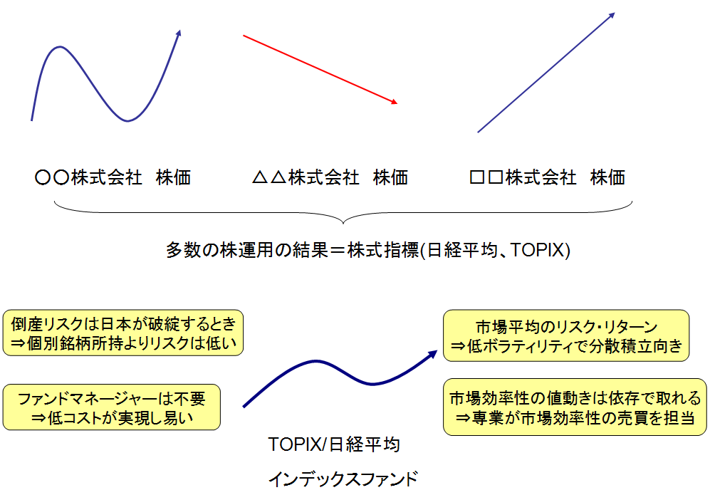 インデックス投資とはインデックスに連動する金融商品を買うことです。基本はそれだけです。