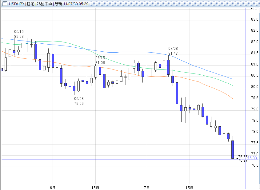 いま、一番注目を浴びているのはドル円の76円台になったことですね。77円とか通過点に過ぎず、歴史的水準になっています。