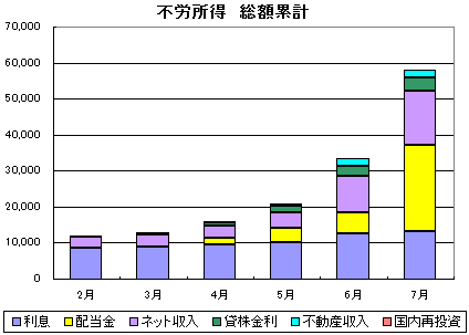 ETFの分配金が大きく出たので、7月もかなり伸びました。分配金以外は着実に増加しつつあるネット収入と貸株金利が続きます。主力となる分配金収入はやっぱりいいですね。これからも資産を増やしつつ、分配金収入の額は増やしていきたいです。