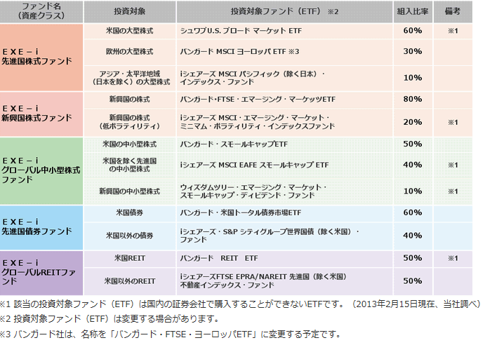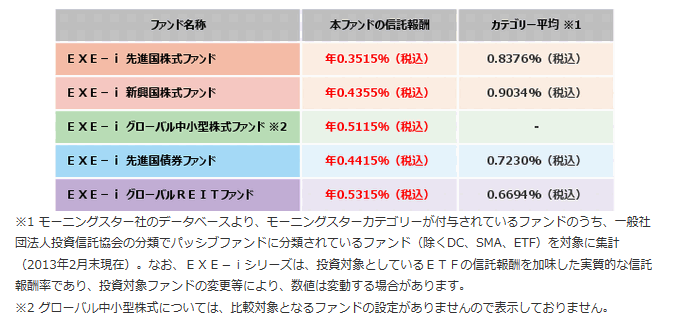 EXE-i(エグゼアイ) 5本のファンド (信託報酬)
