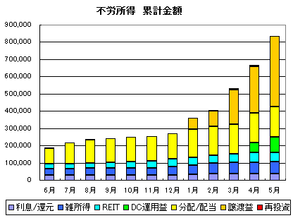 ★2013年5月までの累計不労所得 832,544円