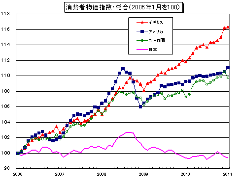 消費者物価指数ということをブログで触れましたが、もう少し調べました。そうしたら参考になりそうなグラフがありましたので、ご紹介したいと思います。